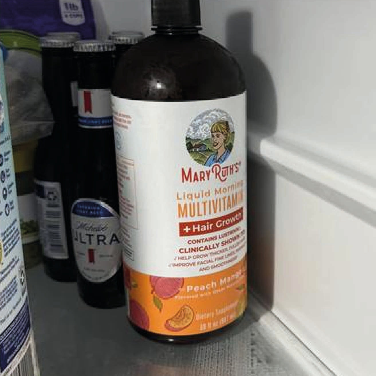Fórmula líquida con sabor melocotón–mango, fácil de ingerir y agradable al tomar.