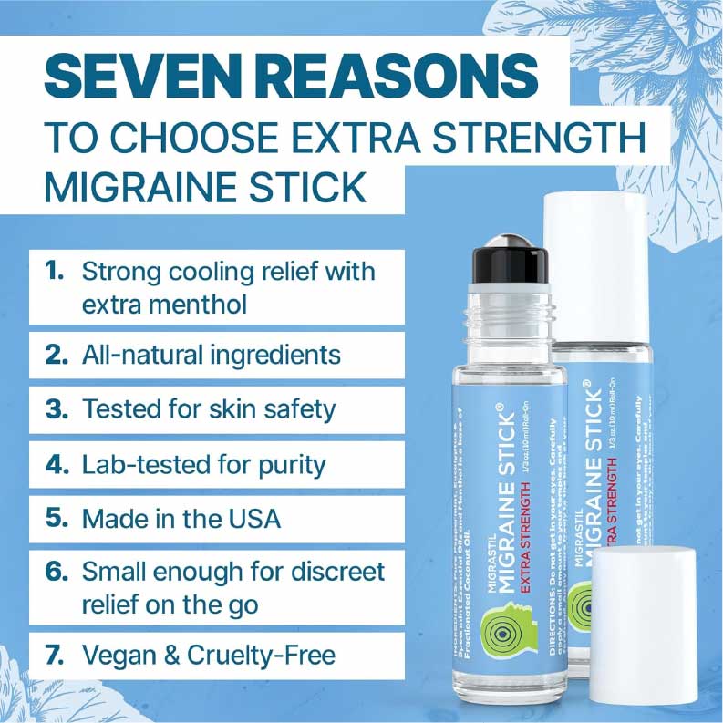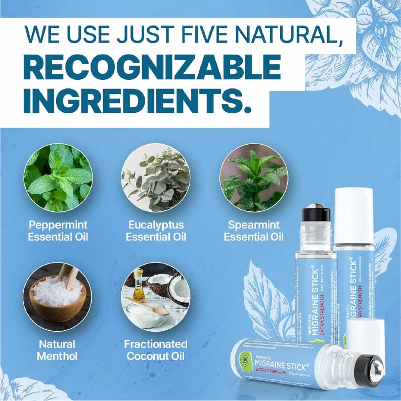 Aceite esencial roll-on diseñado para aliviar migrañas y dolores de cabeza por tensión de forma rápida y práctica.