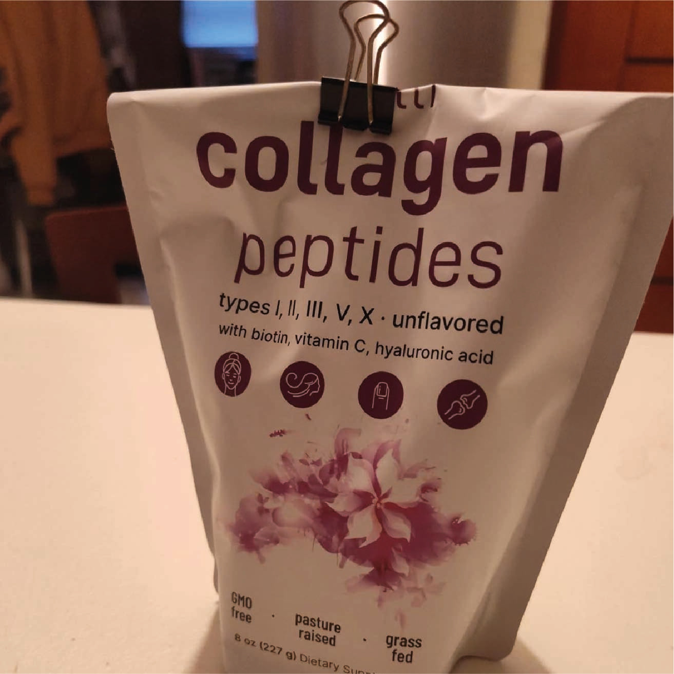 Contiene colágeno tipos I, II, III, V y X + vitamina C + biotina + ácido hialurónico.